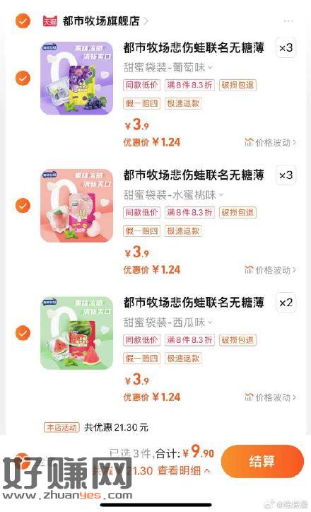 拍8袋9.9 ,都市牧场无糖薄荷糖