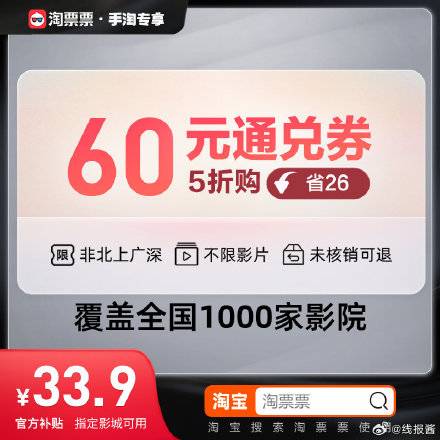 33.9亓[ 淘票票 ] ,60亓电影通兑券