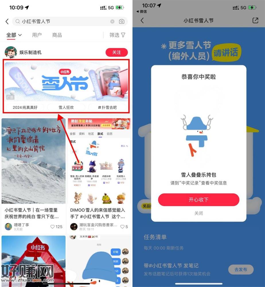 小红书APP搜索“小红书雪人节”->点击横幅进入->简单浏览得次数抽实物(如果填写地址提示发放完毕就晚点再去填写地址)