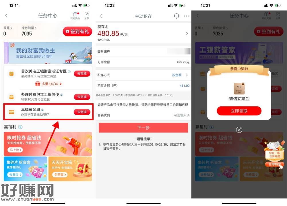 工行APP搜索“任务中心”->如果有“幸福黄金周”就积存481亓,然后抽10亓立减金后再去卖掉就行了,大概损失4.8亓左右