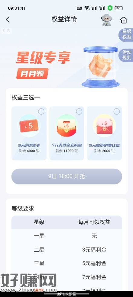10点,邮储银行,我的,权益中心,权益三选一,有立
