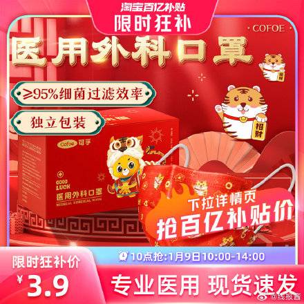 库存1000,3.9包邮 ,可孚口罩100个