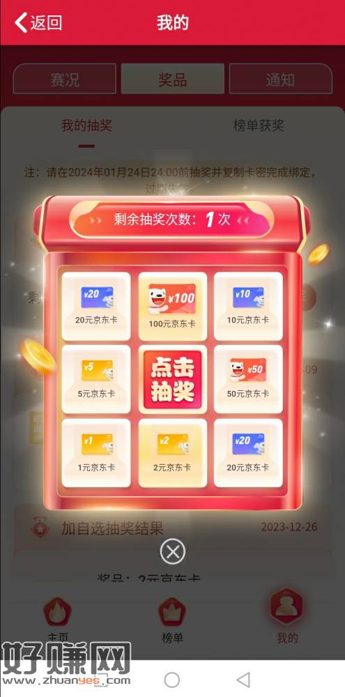 上个月报名参加 方正证券,一键加自选抽京东E卡的,到首页_ETF大赛 我的、奖品里 补了一次抽奖机会!!!