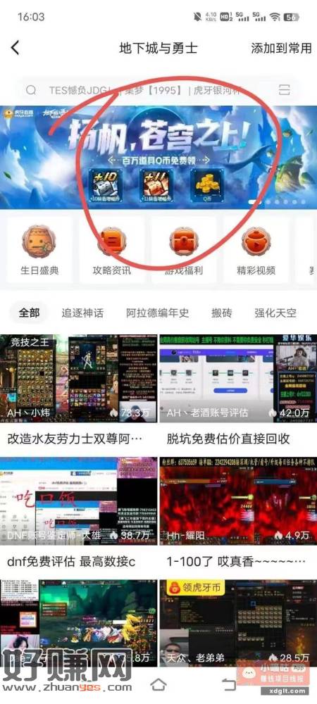 虎牙搜索地下城 绑定回归角色 前面那两个任务完成然后观看10
