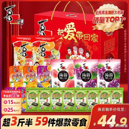 39.9亓,喜之郎喜爱礼盒最大1846g,