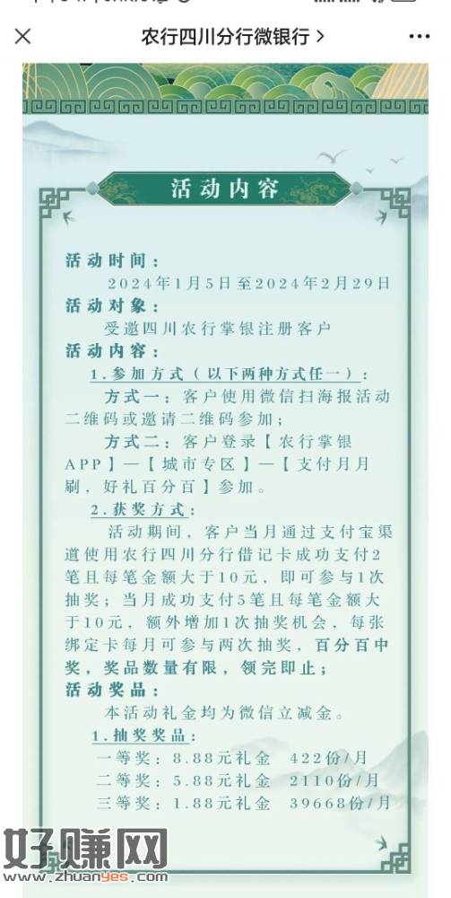 老农四川分行公众号,支付享好礼月月刷!停机在四川的玩