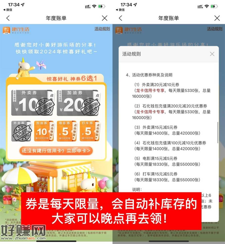 建行生活APP扫码->一直拉到最后即可领取(券没了别着急领其他的,每天早上10点30分自动补库存)