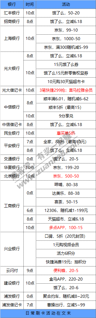6月21号周日 各大银行活动优惠