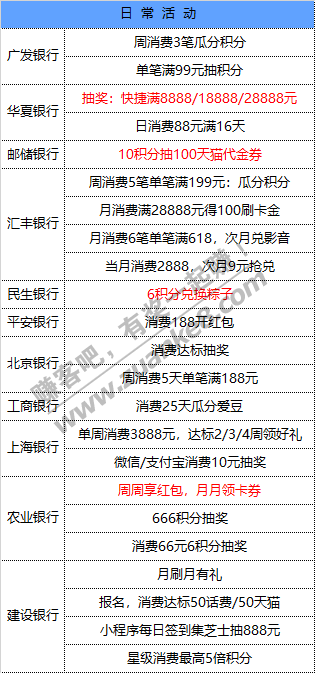 2、报名,单周计积分消费满5笔、每笔满199元、当月满28888元,可额外获得100元刷卡金,6000名额(按达标时间)