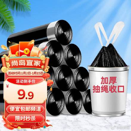 [ 6.9元包邮 ]尚岛宜家 抽绳垃圾袋 黑色100只