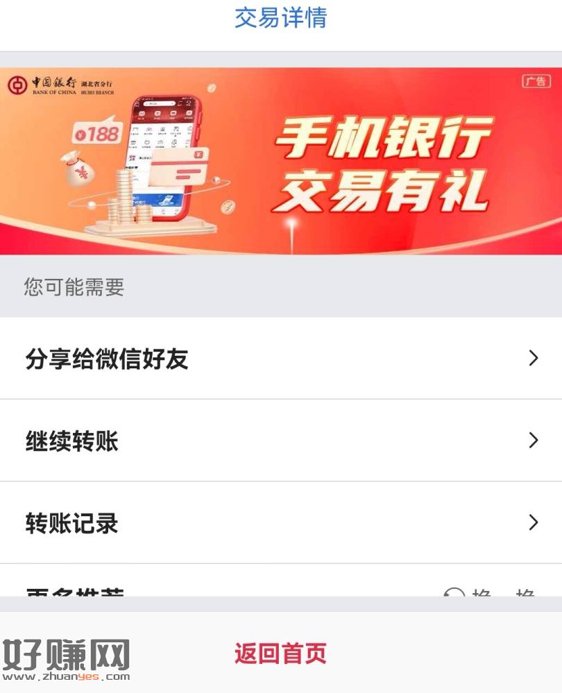 湖北中行,转自己的任意一张银行卡金额>1元就有一次抽奖机会,没有上限,但是我抽了三次就第一次中了,入口在交易完的界面下面
