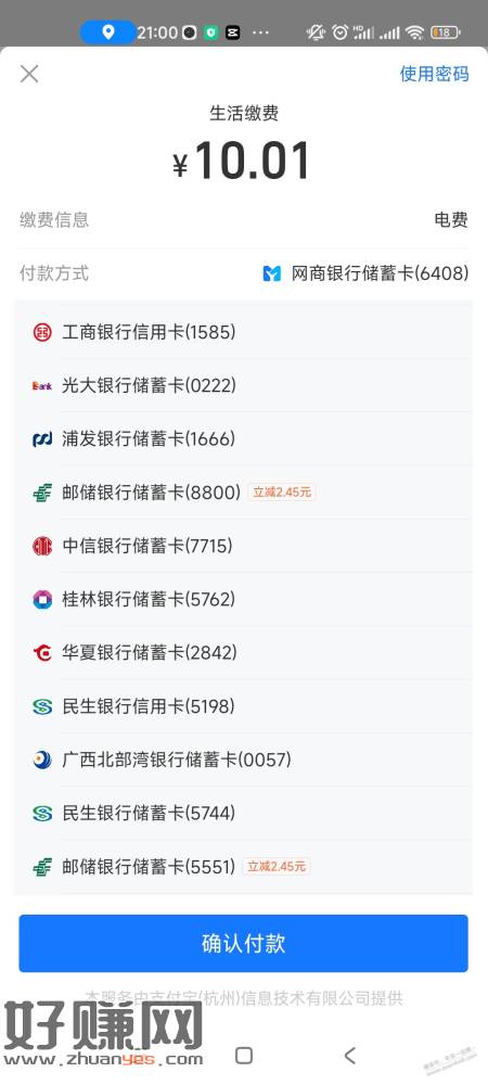 广西邮储支付宝生活缴费10.01-2.45