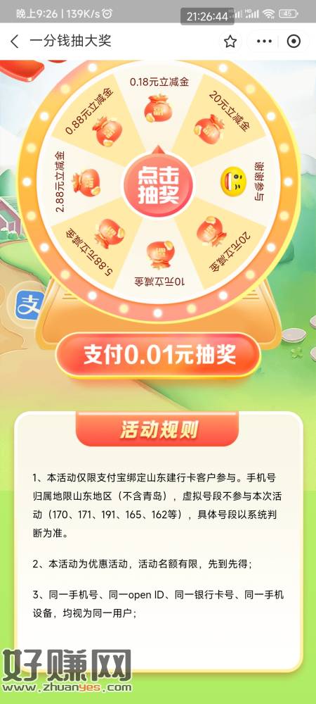 山东建行用户(不含青岛) 0.01抽支付宝/微信立减金 图一