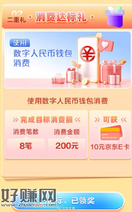 微信扫,建行数币达标可领10e卡