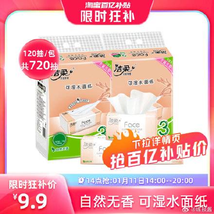 百亿补贴,9.9亓 ,洁柔无香抽纸120抽6包实惠大包!