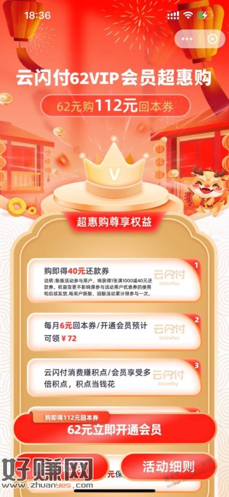 开卡有1000-40还款券,等于22开年卡