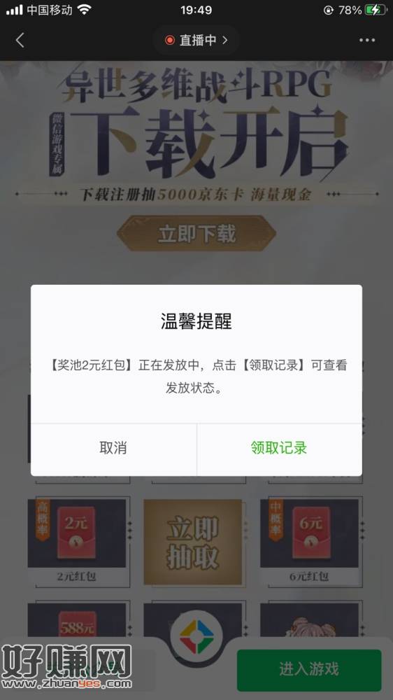 wx白荆回廊,抽奖的补包了,没抽的速度上