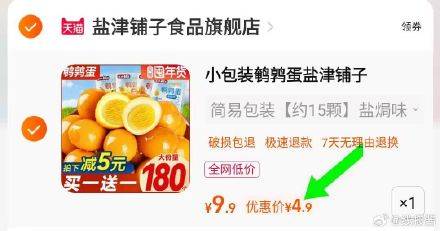 4.9亓[ 盐津铺子 ] ,鹌鹑蛋盐焗卤蛋小包装15粒