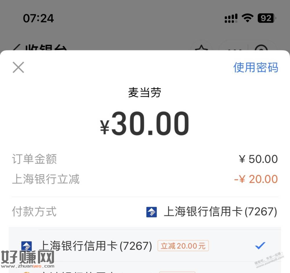 ……上海xing/用卡 50-20 麦当劳礼品卡,润15.8