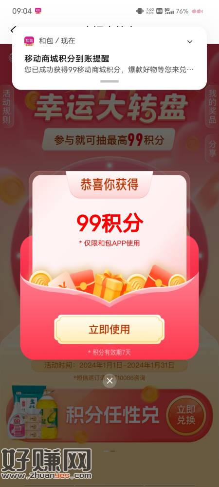 中国移动和包APP 搜幸运 限中国移动卡