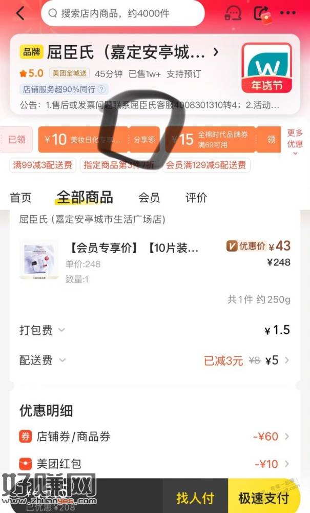 美tuan搜妆发节 页面券全拎 进屈臣氏 分享拎10券 可买欧莱雅面膜10片49亓