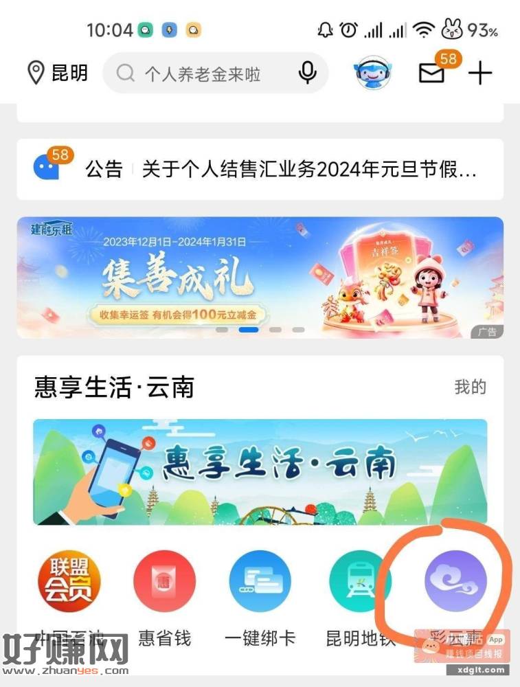 建行,需要云南手机号码开通的数币钱包才能抽,定位昆明,刚中5立减