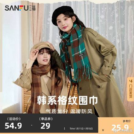 20.9亓,三福官旗 ,韩系格纹围巾保暖1条