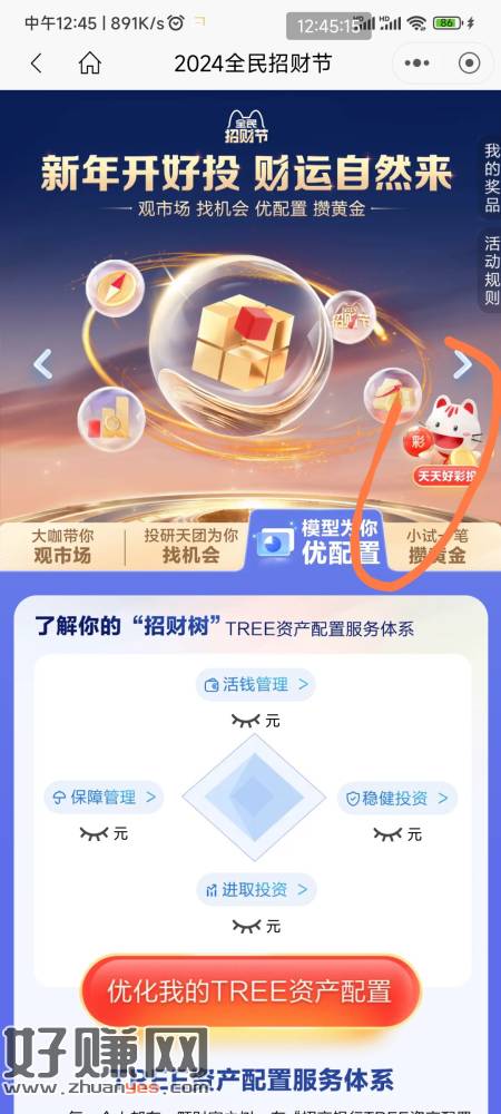 招行搜 全民招财节 右下 天天好彩投 每天抽奖 领体验金