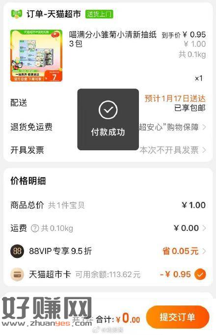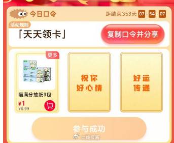 天猫超市-右下角 惊喜口令:天天领卡 翻牌抽1亓包邮抽纸