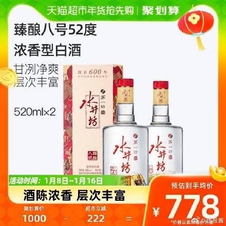 水井坊臻酿八号浓香型高度52度520ml*2瓶