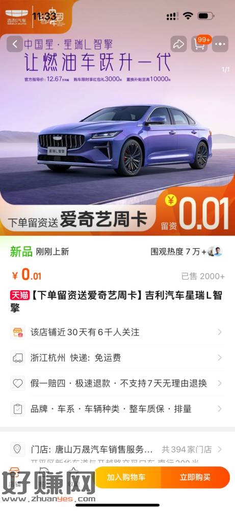 CZ0001 「【下单留资送爱奇艺周卡】吉利汽车星瑞L智擎」