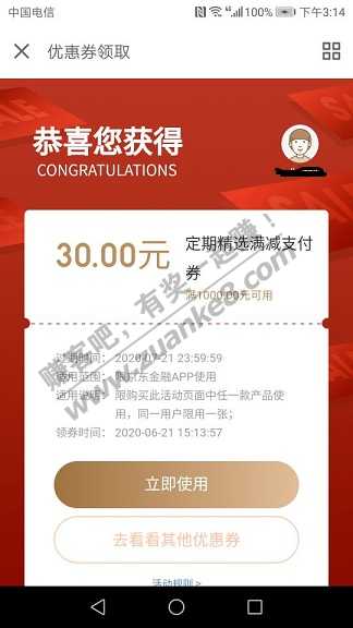 京东受邀定期券1000-30