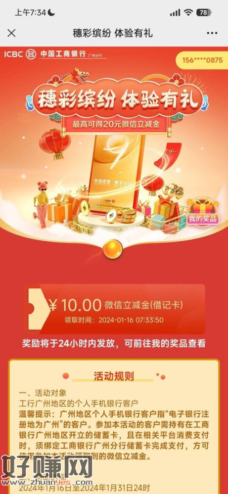 广州工行新活动穗彩缤纷体验有礼10元立减金