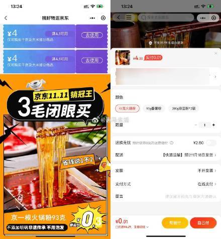 京东最低0.01亓撸火锅粉一包