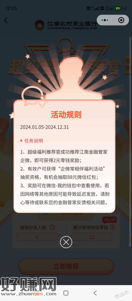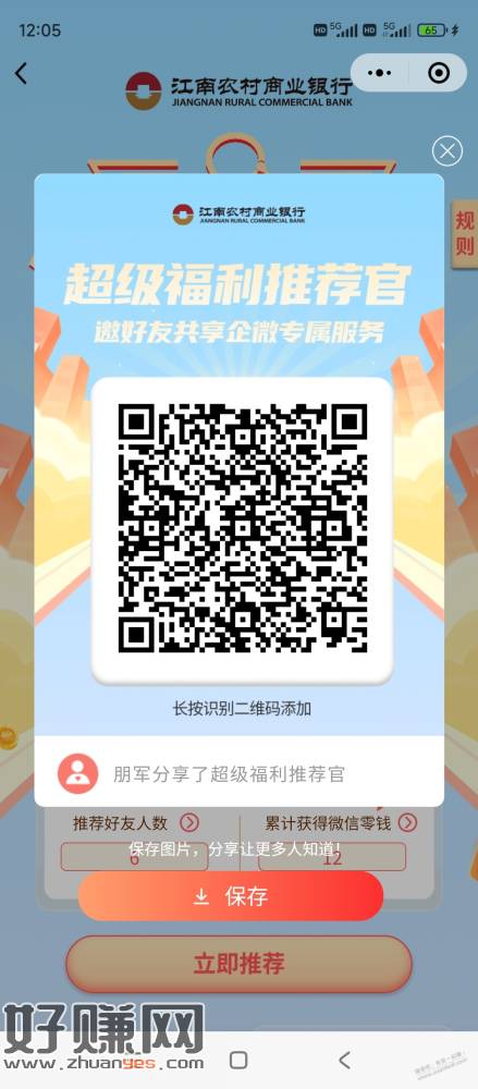 步骤:先扫码加入企业微信,然后再次扫码成为推荐官,就可以邀请江苏地区的微信了,邀请一个2元