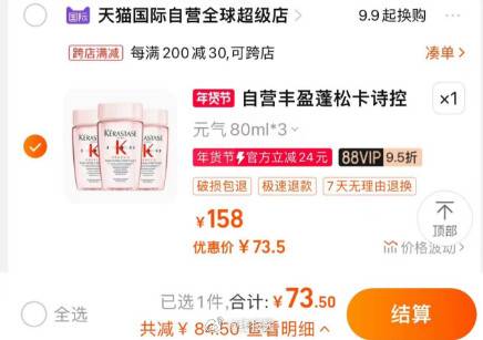 79亓,88vip只要75!!,卡诗元气姜洗发水80ml×3