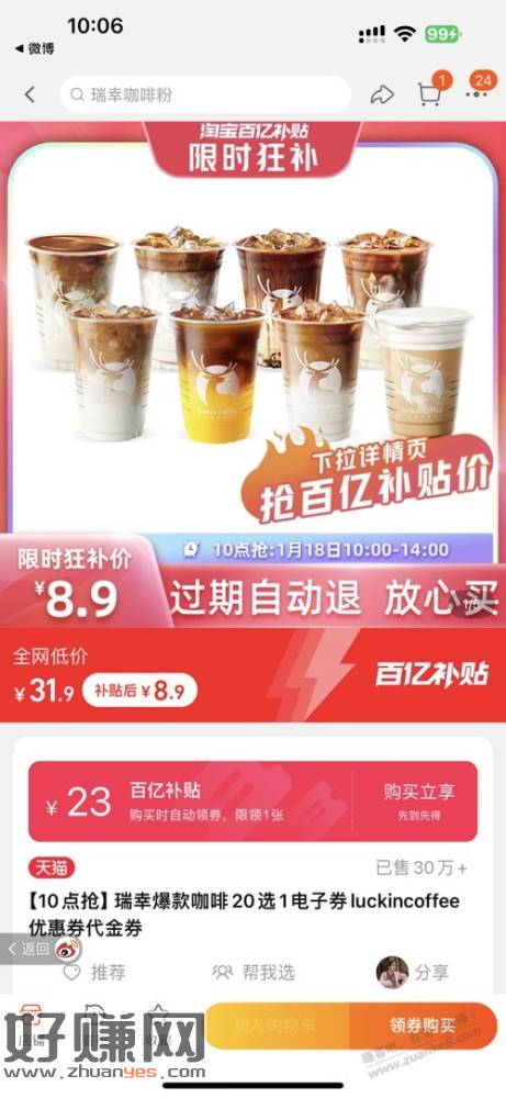 支付宝 淘宝闪购 黑钻领18免单奶茶卡