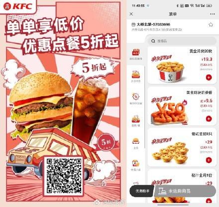 今天疯狂星期四,肯德基有v50套餐,扫码点可以便宜