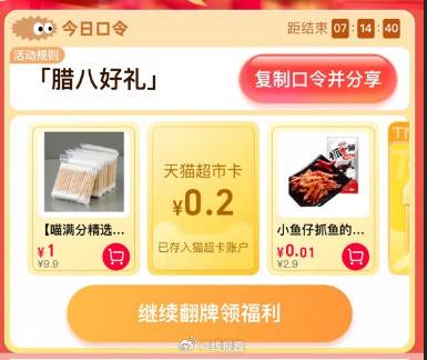 猫超右下角今日口令[ 腊八好礼 ],商品加了1元包邮1