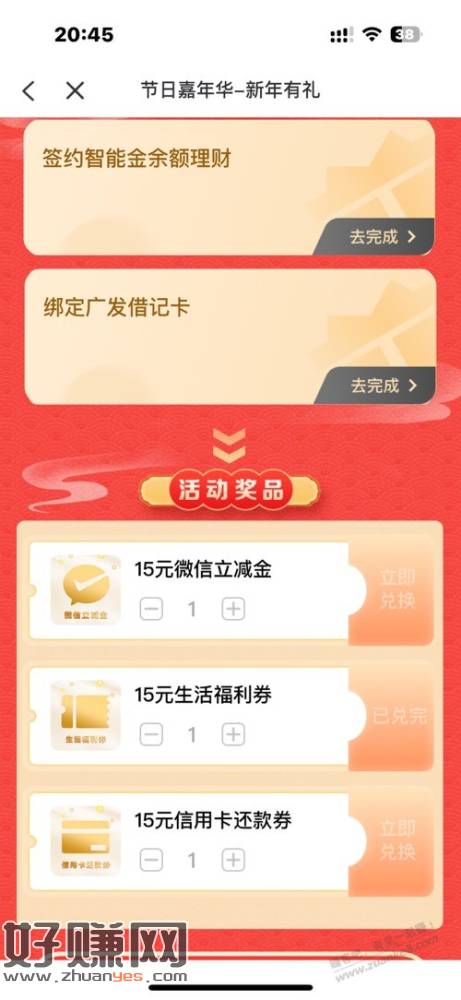 广发银行,搜索节日嘉年华,受邀15立减金没货可以领还款或福利券1元买15立减金