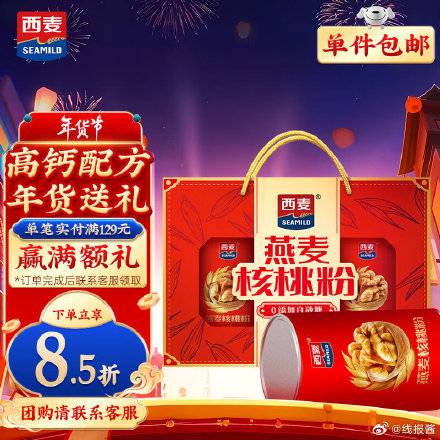 35.9元,西麦 燕麦核桃粉礼盒1000g