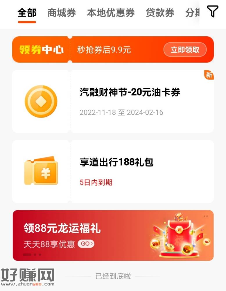 平安口袋银行搜车主财神节,中了20卡,以前都是给积分,看见有