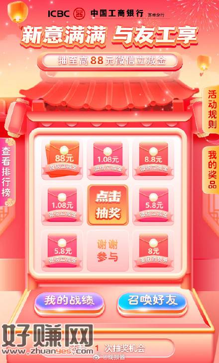 限制苏州工行,抽奖有立减金,反馈中了1元