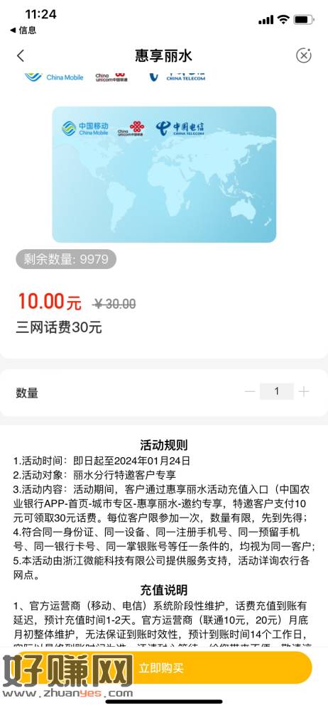 【中国农业银行】20元话费来了!1月24日前登录农行掌银-首页-城市专区-惠享丽水-邀约专享或点击go.abchina.com/k/7oU 即可领20元话费。数量有限,谨防失效,详询网点。退订回ZJTD