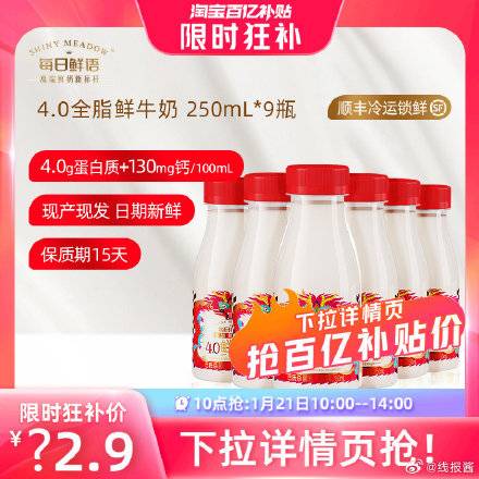 10点,百亿卜贴42.9亓 ,每日鲜语高端4.0鲜牛奶9瓶