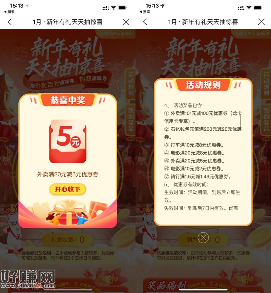 【建行生活每天抽电影券外卖券】建行生活APP扫码->每天1次机会抽电影票满减券或外卖满减券