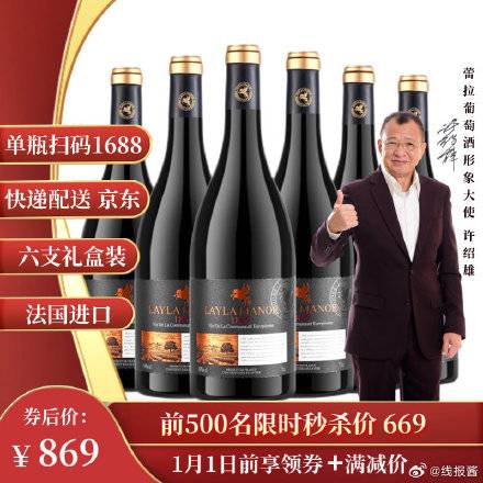 169元,蕾拉 干红葡萄酒 750ml*6瓶