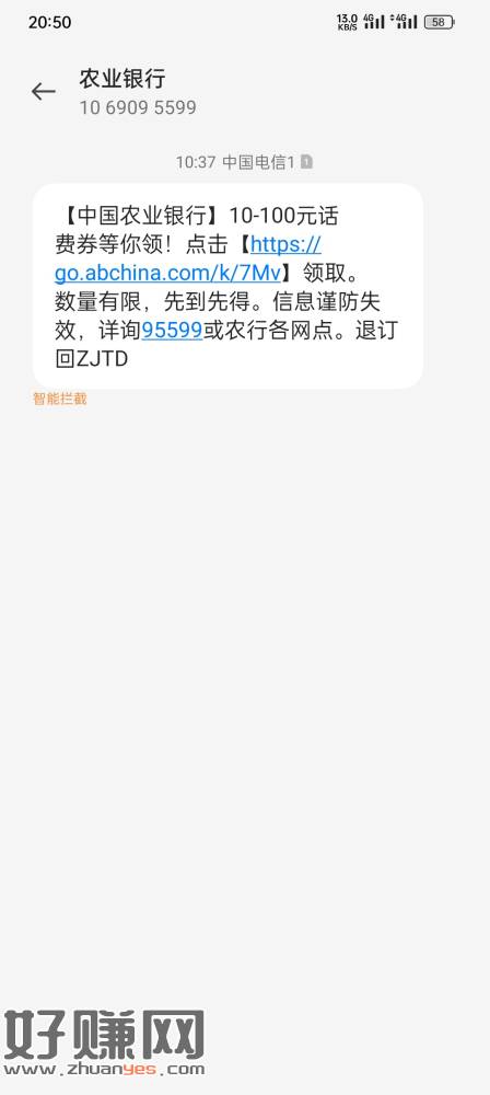 】领取。数量有限,先到先得。信息谨防失效,详询95599或农行各网点。退订回ZJTD