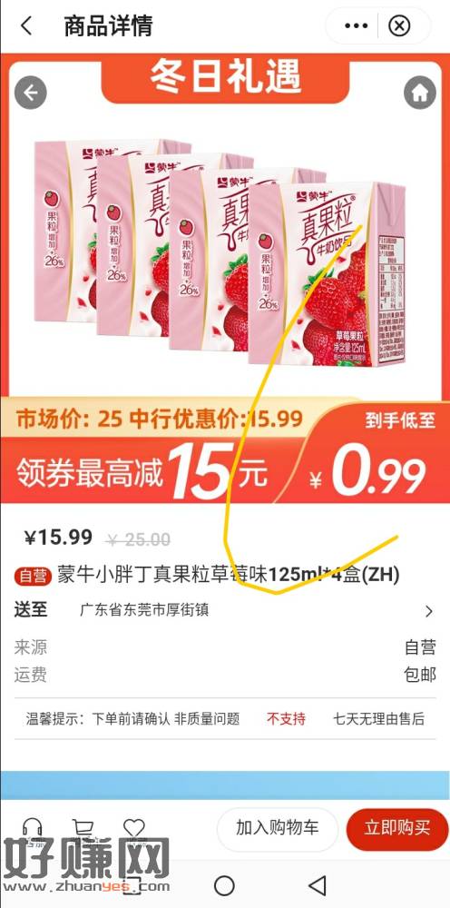 中行___生活___蒙牛小胖丁真果粒草莓味125ml×4盒 ,领 15优惠劵、