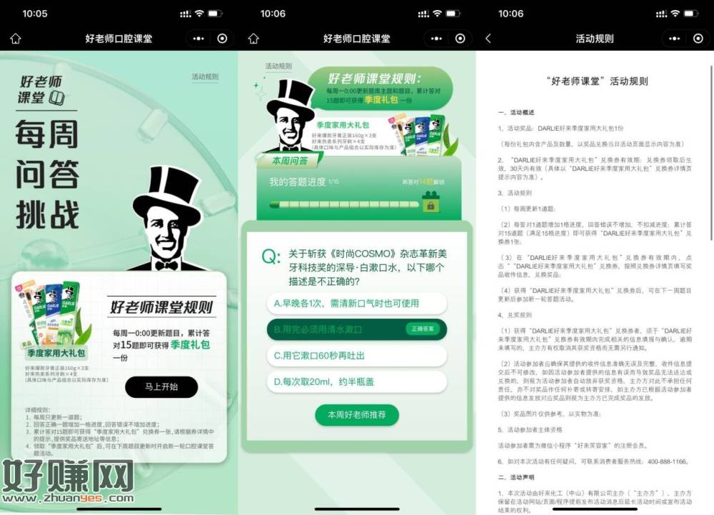 微信打开地址->每周1一道题目,连续答对15周领黑人牙膏礼包